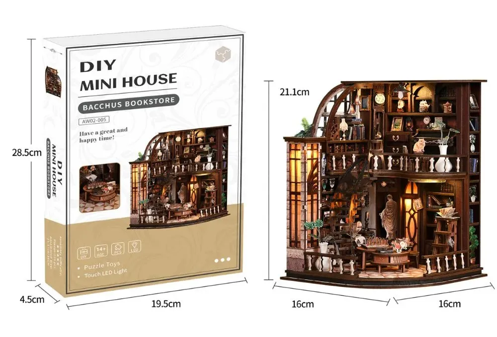 The Bacchus Bookstore DIY Mini House feels like stepping into a cozy, old-world bookshop where every corner tells a story—warm glowing lights, towering shelves packed with tiny books, winding staircases, classical statues, and charming details like chess pieces, violins, and framed art. Designed for hands-on creators and dreamers alike, this miniature kit invites you to slow down and enjoy the simple joy of building something beautiful with your own hands. As you assemble each piece, the space comes alive with a rich, vintage atmosphere that feels both intellectual and magical, making it not just a DIY project, but a relaxing escape and a stunning display piece once complete.