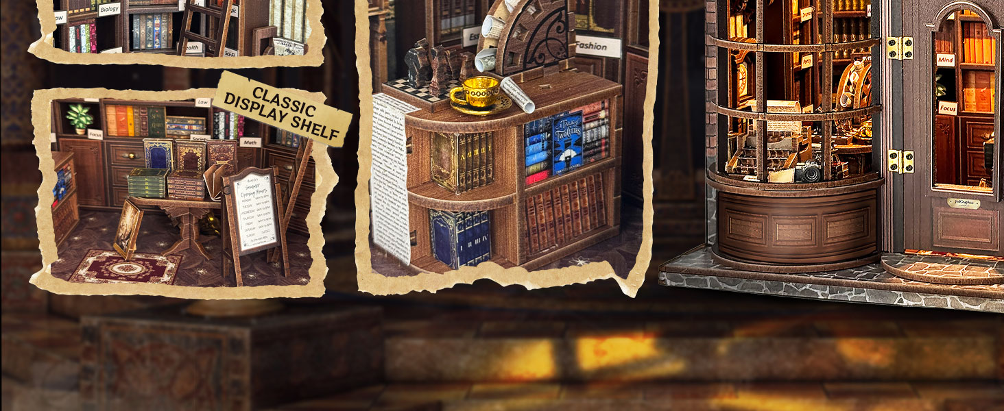 • Elegant Display Shelves: Showcases beautifully bound books and classic décor that add depth and authenticity.