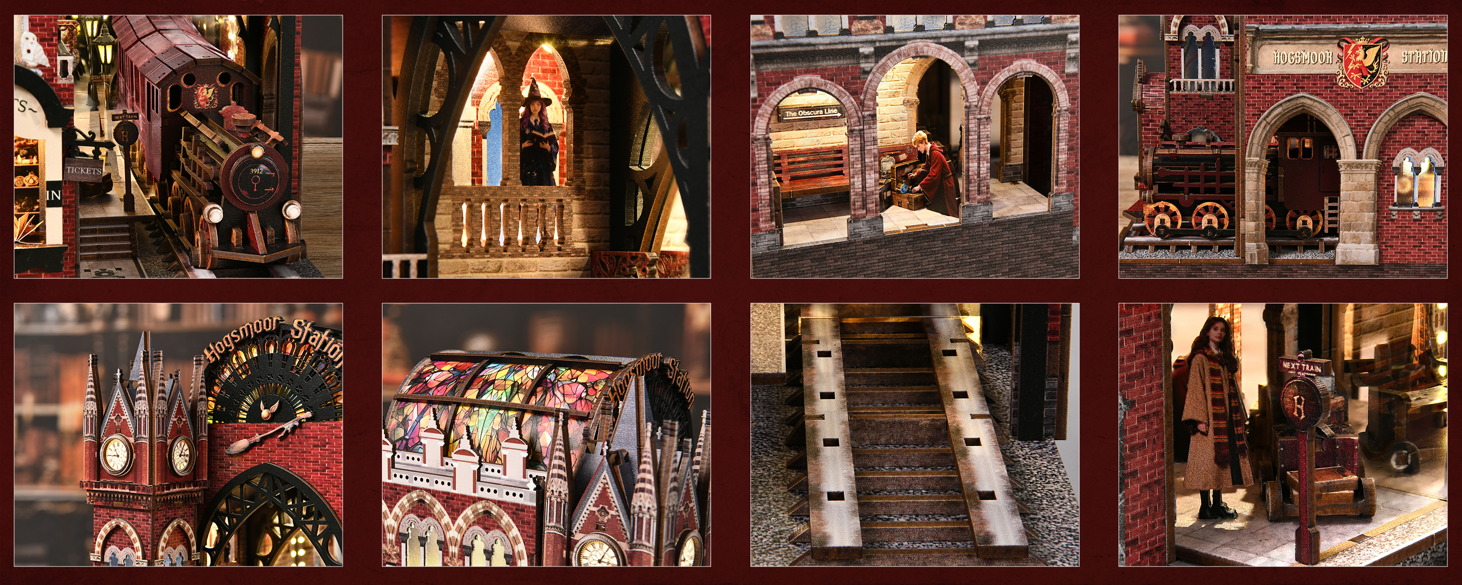 The heart of Hogsmoor Station lies in its enchantment. The combination of warm lighting, stained-glass glow, and old-world railway charm creates a dreamlike world — a place that feels both nostalgic and otherworldly. It’s the perfect miniature for fantasy lovers, readers, and collectors who cherish the magic of storytelling.