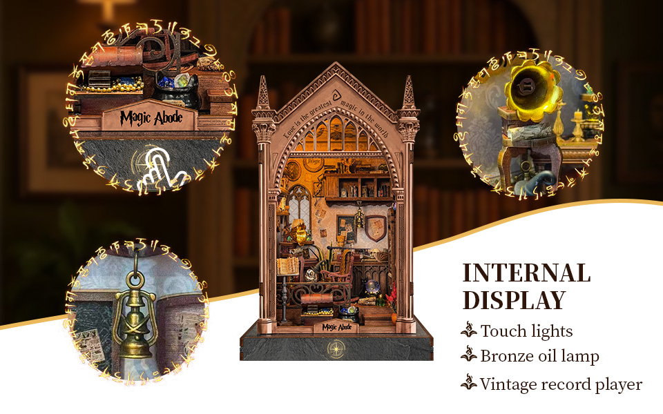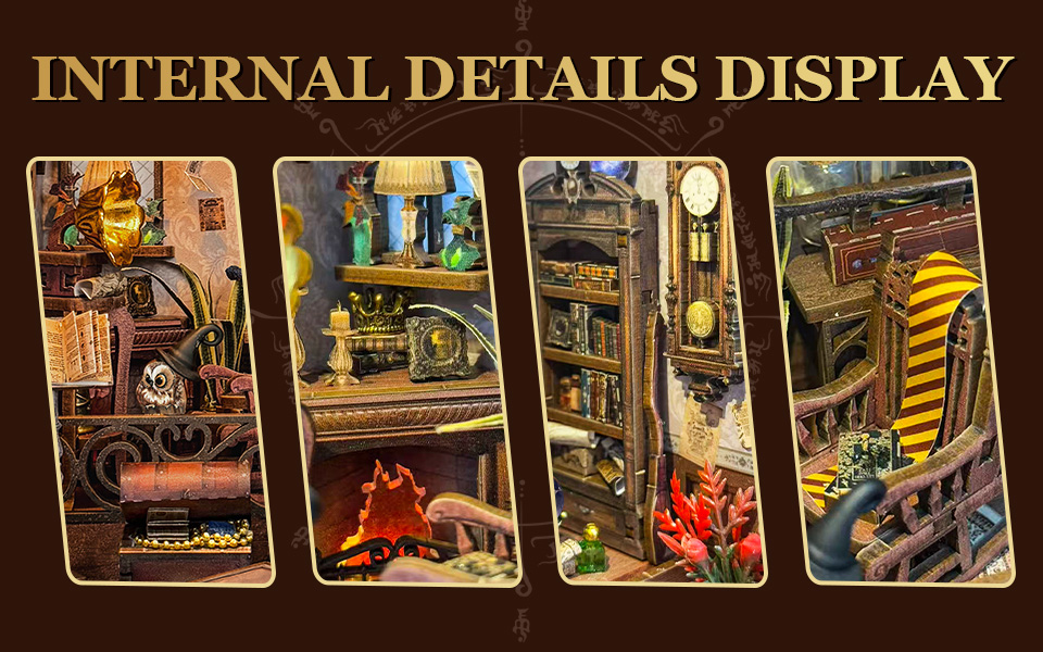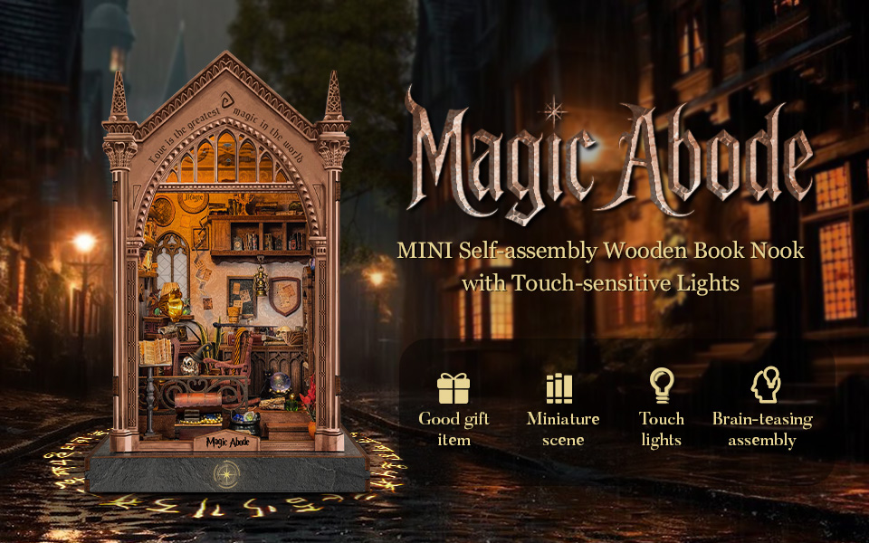 The Magic Abode DIY Book Nook Kit feels like stumbling into a wizard’s favorite little hideout—cozy, cluttered, and full of charm. The retro rocking chair, complete with its bold striped scarf, looks as if someone just hopped up to grab a midnight snack. To a half-opened treasure chest to sits nearby, spilling shiny trinkets while a tiny owl keeps watch like it knows all your secrets. The fireplace crackles with warm, welcoming light, and the medieval furniture is packed with books and curios that hint at countless stories waiting to be told. It’s a tiny world to that feels wonderfully alive—to like it’s just waiting for you to join in the magic.