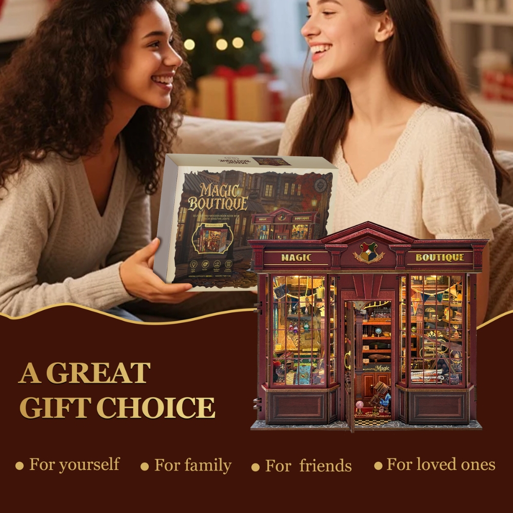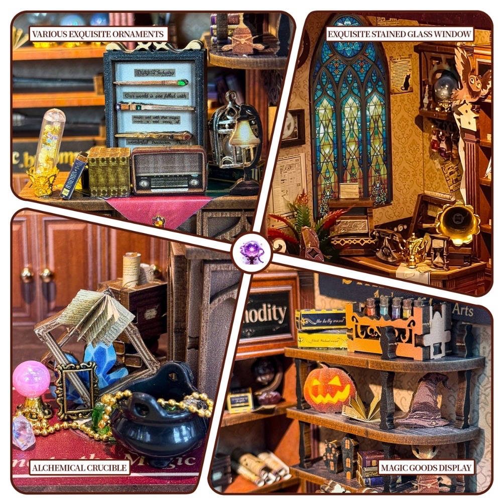 The Magic Boutique DIY Mini House | DIY Miniature Kit look like charming wizard’s shop filled with mystical treasures and enchanting details. Shelves display antique books, glowing potion bottles, magical artifacts, and vintage curios, while a beautiful stained-glass window casts colorful light across the cozy space. From the bubbling alchemical crucible to the whimsical magic goods display, every tiny element brings this magical boutique to life, making it a delightful DIY project and a captivating miniature decoration. ✨🔮📚