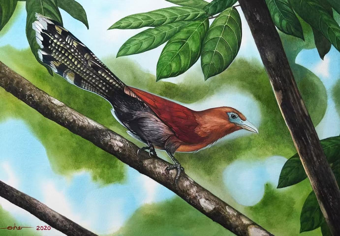 3. Raffles's Malkoha (Male) – Sleek and striking, distinguished by its vivid facial skin and long, elegant tail.