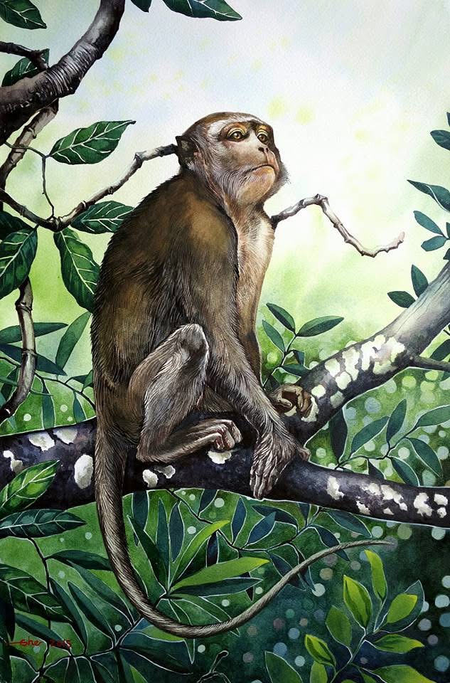 2. Green Light (Monkey) — A thoughtful monkey resting on a tree branch, surrounded by lush leaves, expressing curiosity and a calm connection with nature.