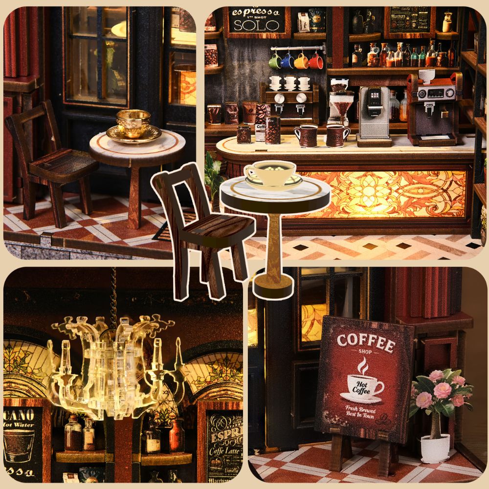 • Cozy Café Atmosphere: With to warm amber LED lighting creates an inviting coffeehouse glow that brings the miniature scene to life, especially at night.